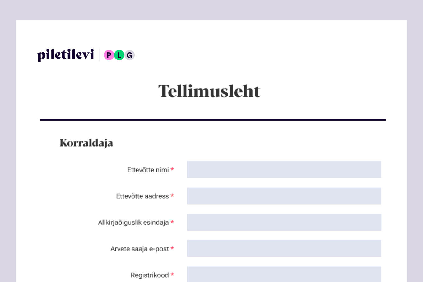 Tellimusleht on vajalik selleks, et kõik sinu soovid oma ürituse piletimüügil saaksid Piletilevi poolt täpselt ja kiirelt täidetud, ning sinu sündmuse piletimüük saaks olla edukas. Tellimuslehe sobiva formaadi saad alla laadida allpool.